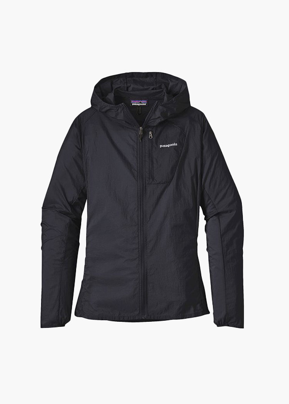 超軽量なリップストップ・ナイロン100%素材、DWR(耐久性撥水)加工済み。ベースレイヤーと軽量なミッドレイヤーの上に着用可能。