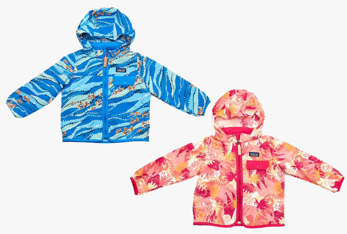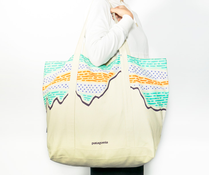 リサイクル素材100%、パタゴニアのオリジナルアートをPVCおよびフタル酸エステル不使用のインクでプリントしました。